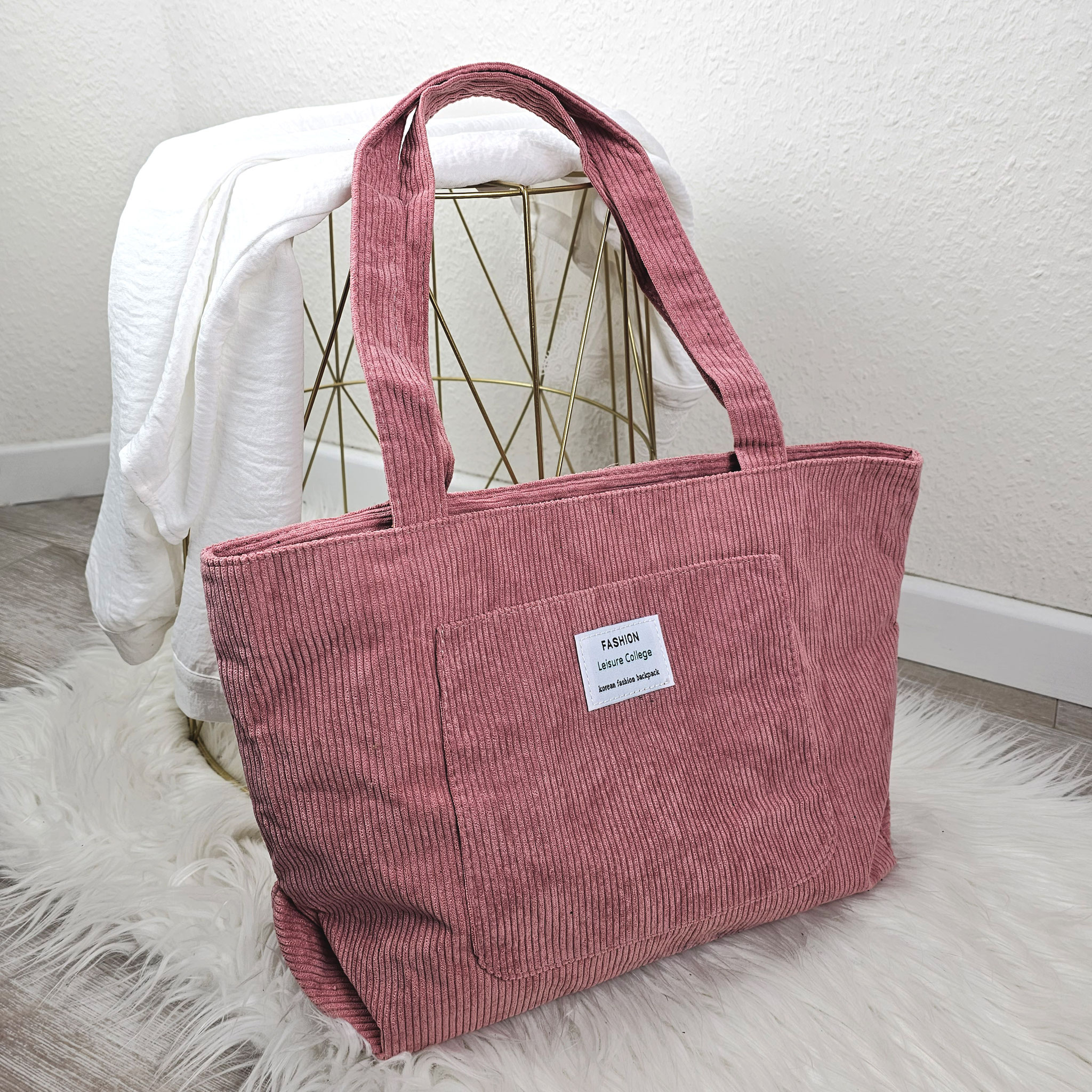 Klea besteht aus weichen, gerippten Stoff. Sie ist geräumig genug um alle alltäglichen Dinge zu verstauen.