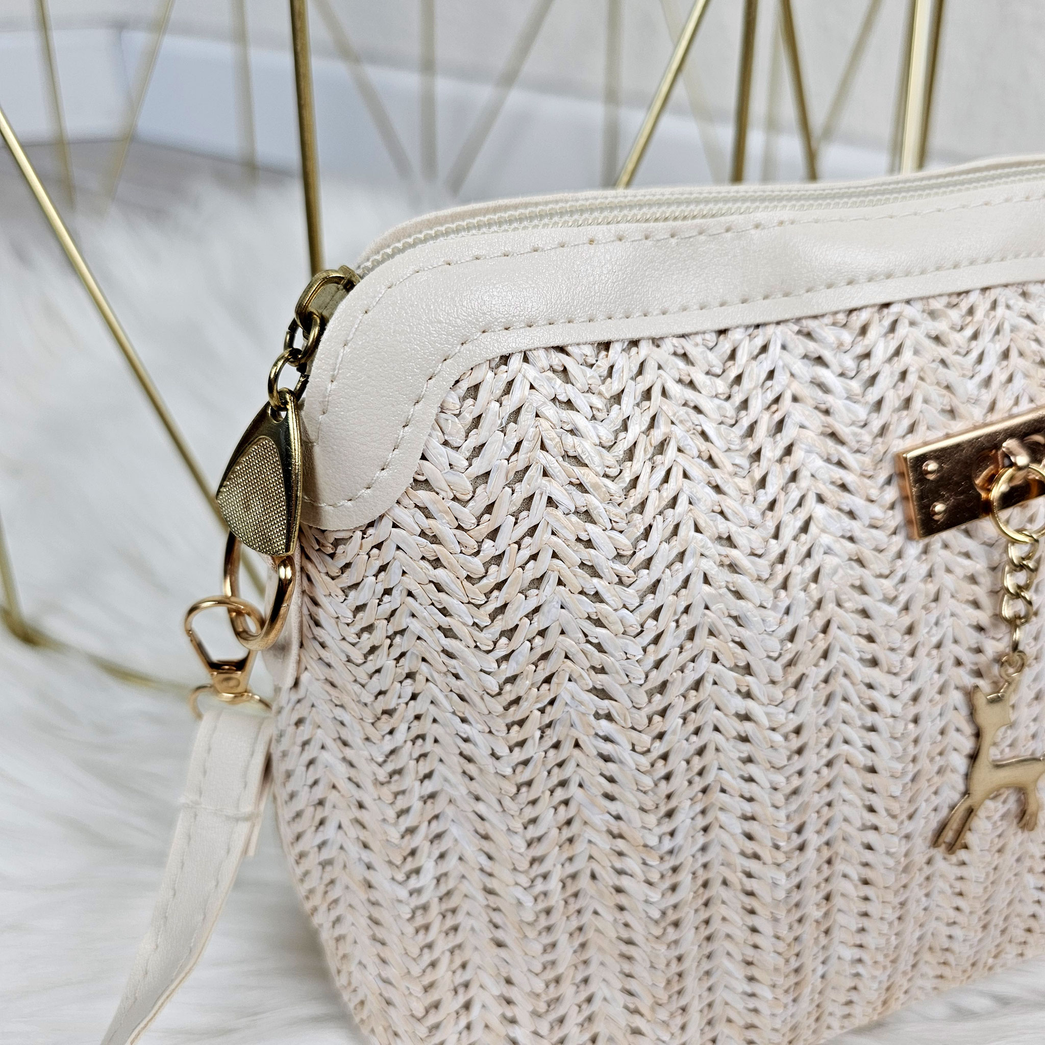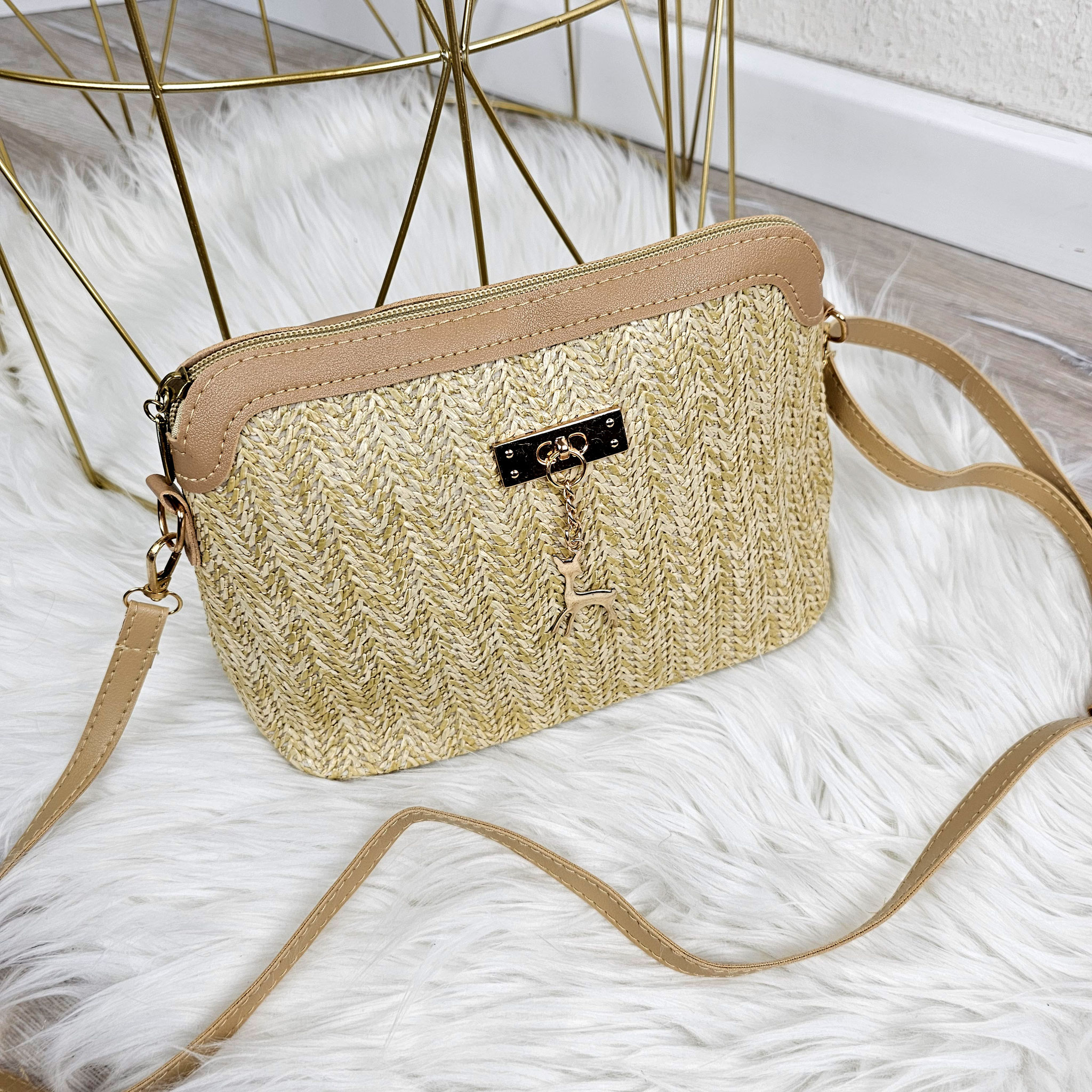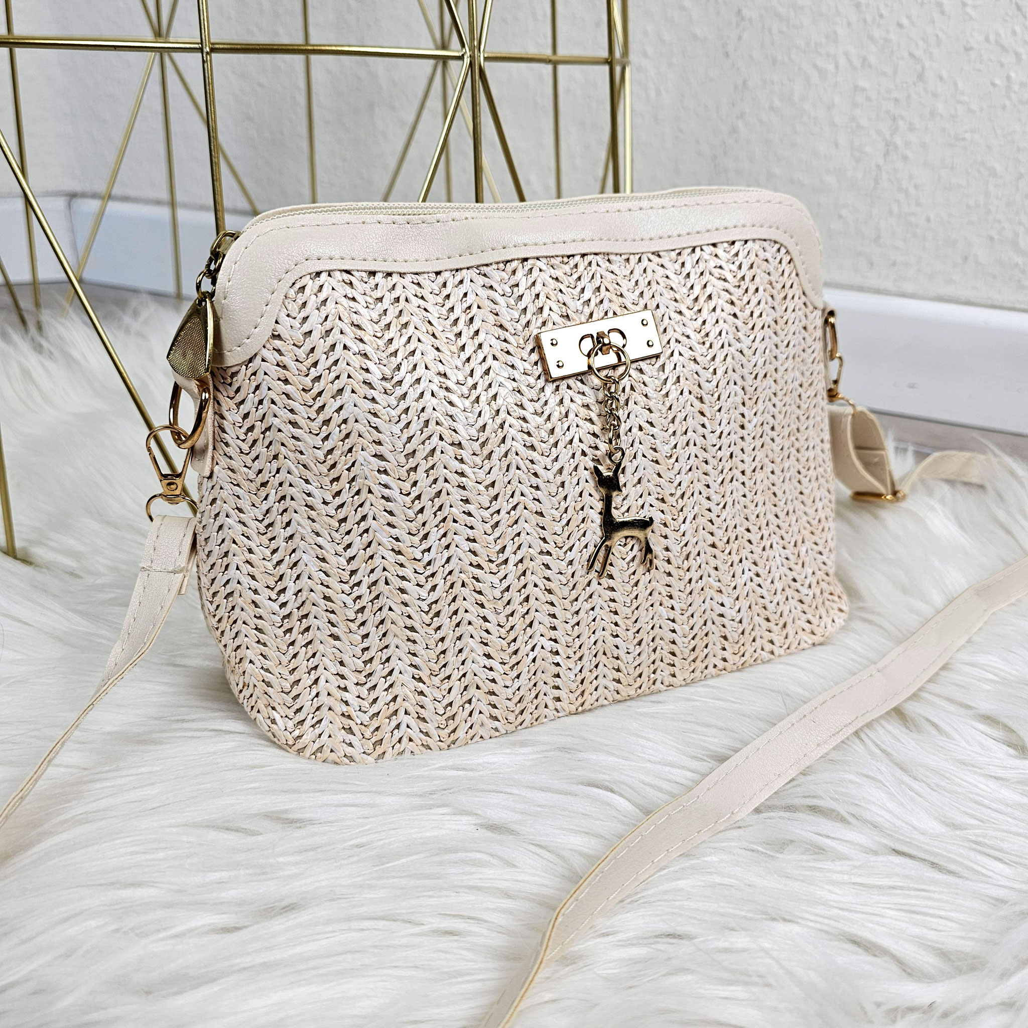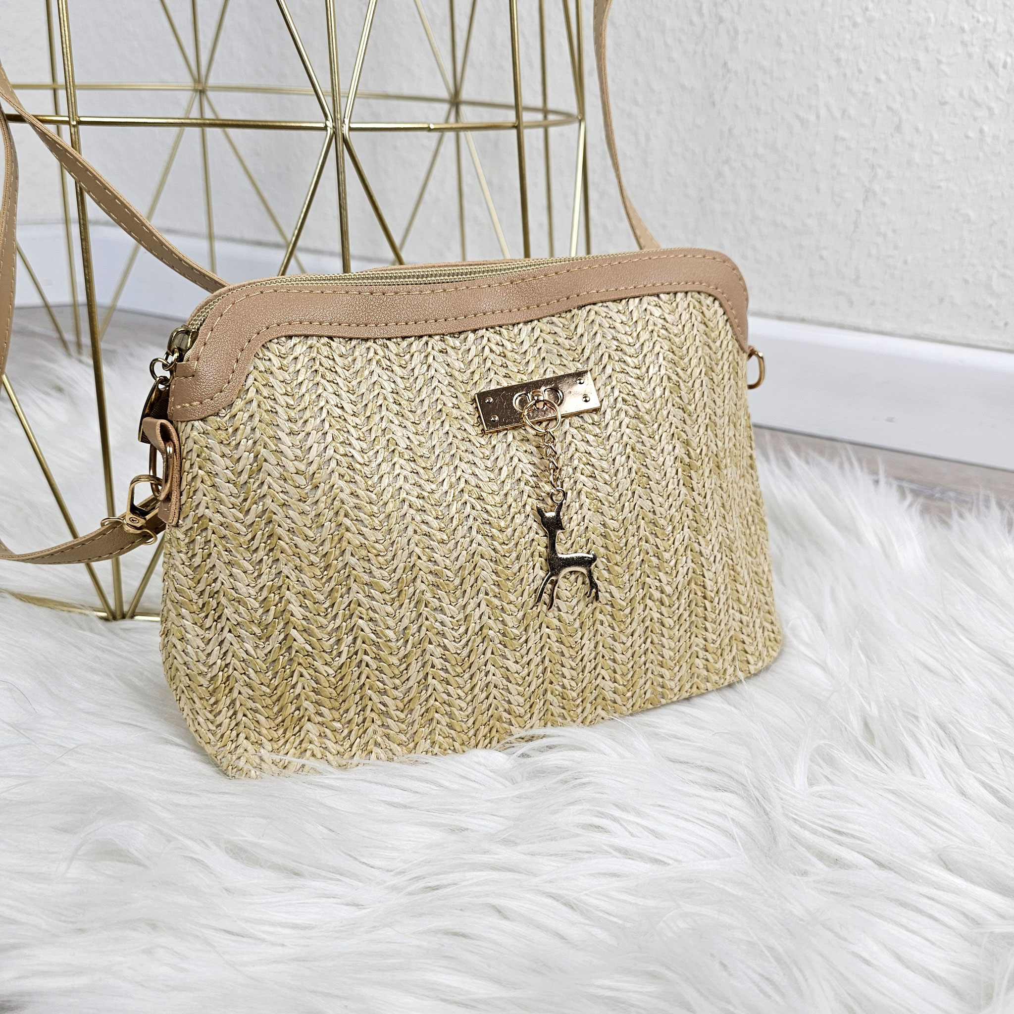 Praktisch und stylisch: Tolle Tasche in Strohoptik mit Bambianhänger, ein absolutes Must-Have für den Sommer. Durch den Reißverschluss lässt sich alles sicher verstauen.